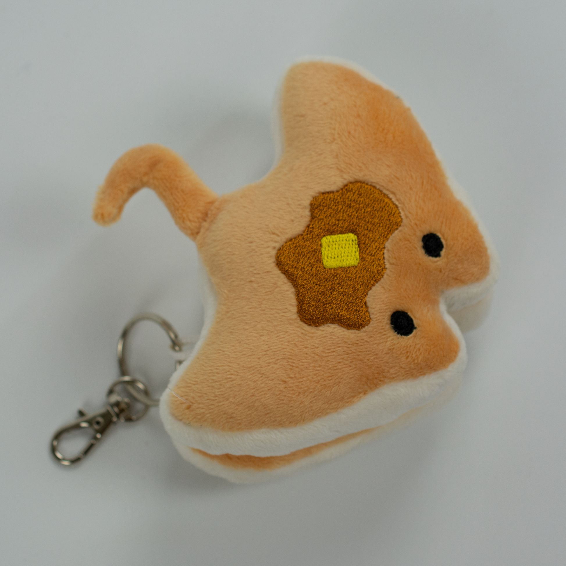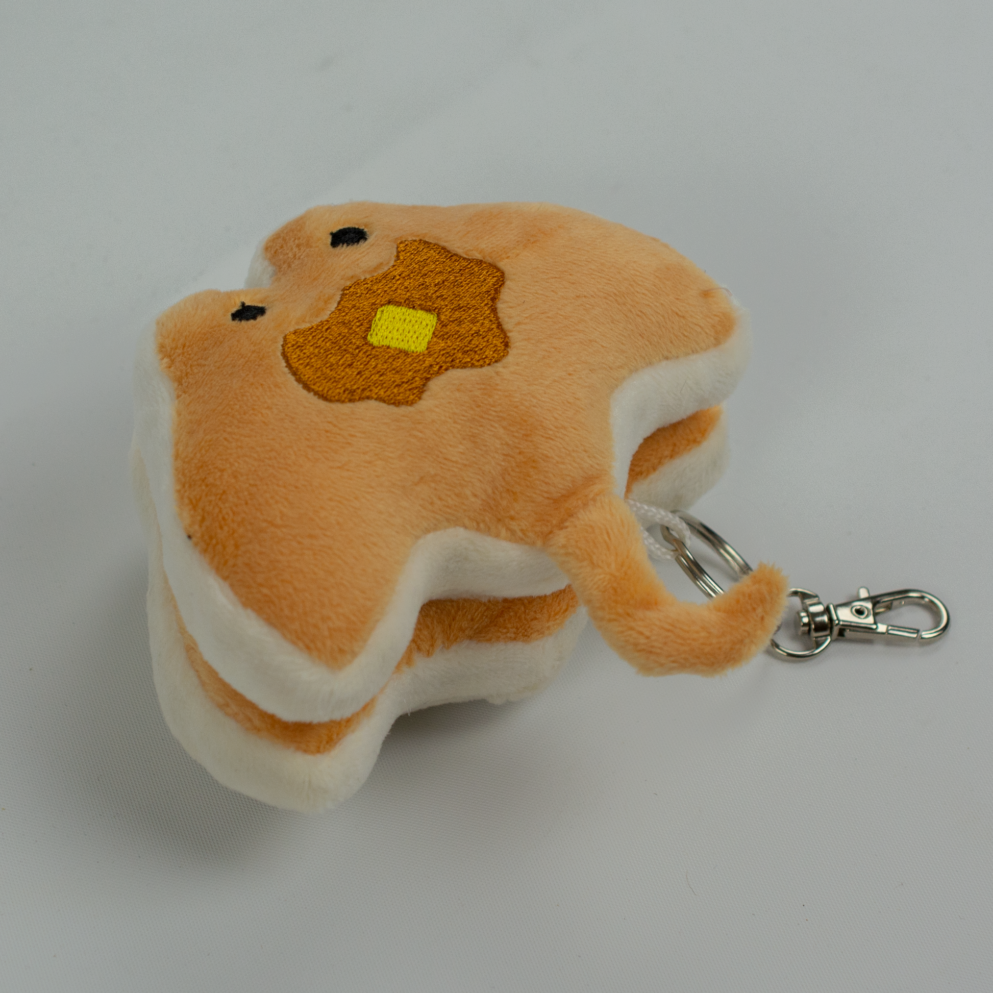 Stacks on the go - with a convenient keychain clasp, you can now put Stacks on your bag, lanyard, or even clip on your jeans as a sweet addition to an outfit. Adorable, soft, and everything you'd want in a plushie keychain.